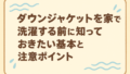 最近は、自宅で洗えると表示されたダウンジャケットも増えています。その場合は、洗濯表示を必ず確認したうえで、次のような点に気をつけると良いとされています。