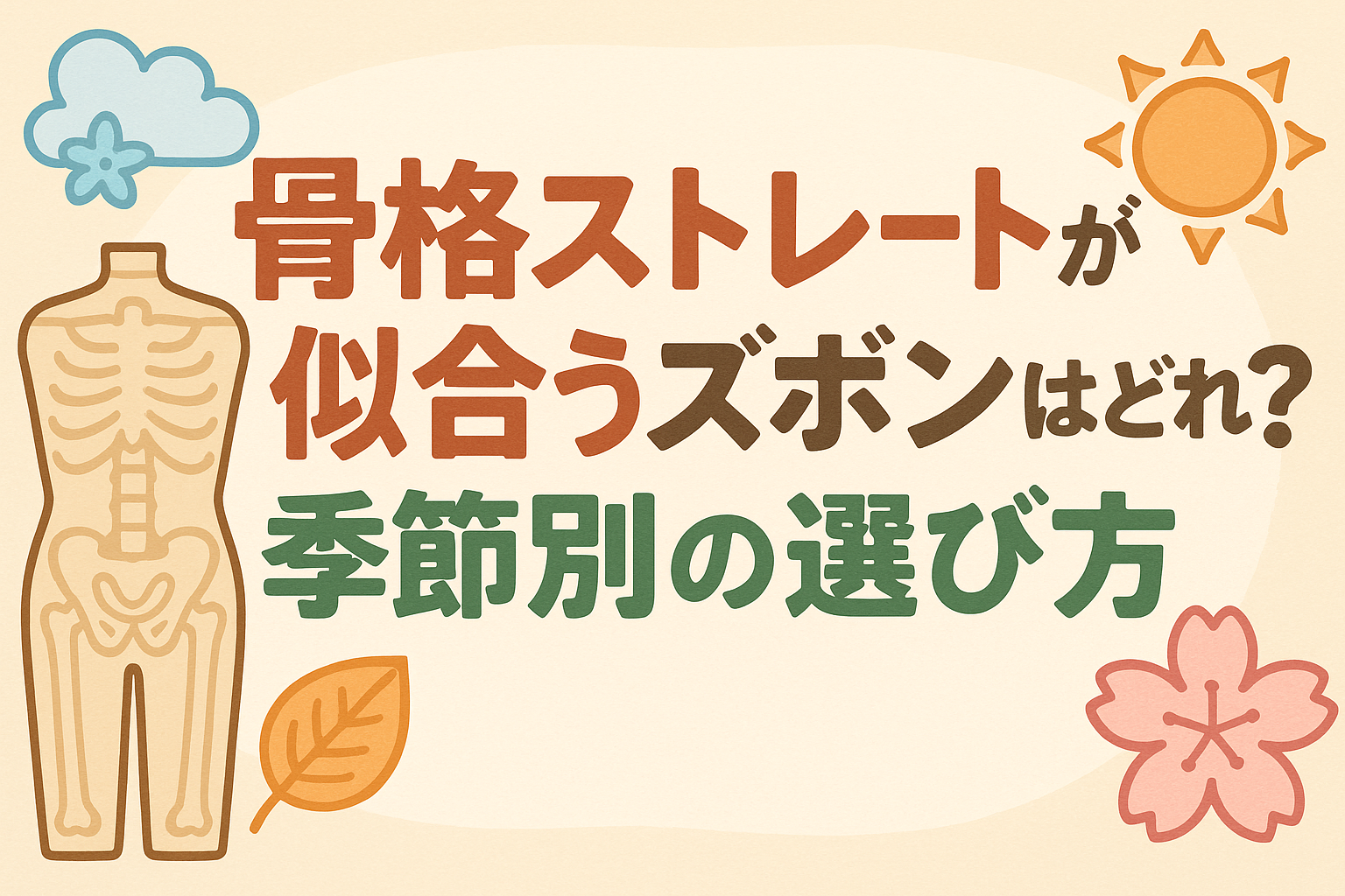 「骨格ストレートが似合うズボンを季節ごとにどう選ぶ?」「センタープレスやテーパードは本当に合うの?」――そんな疑問に、答えるガイドです。