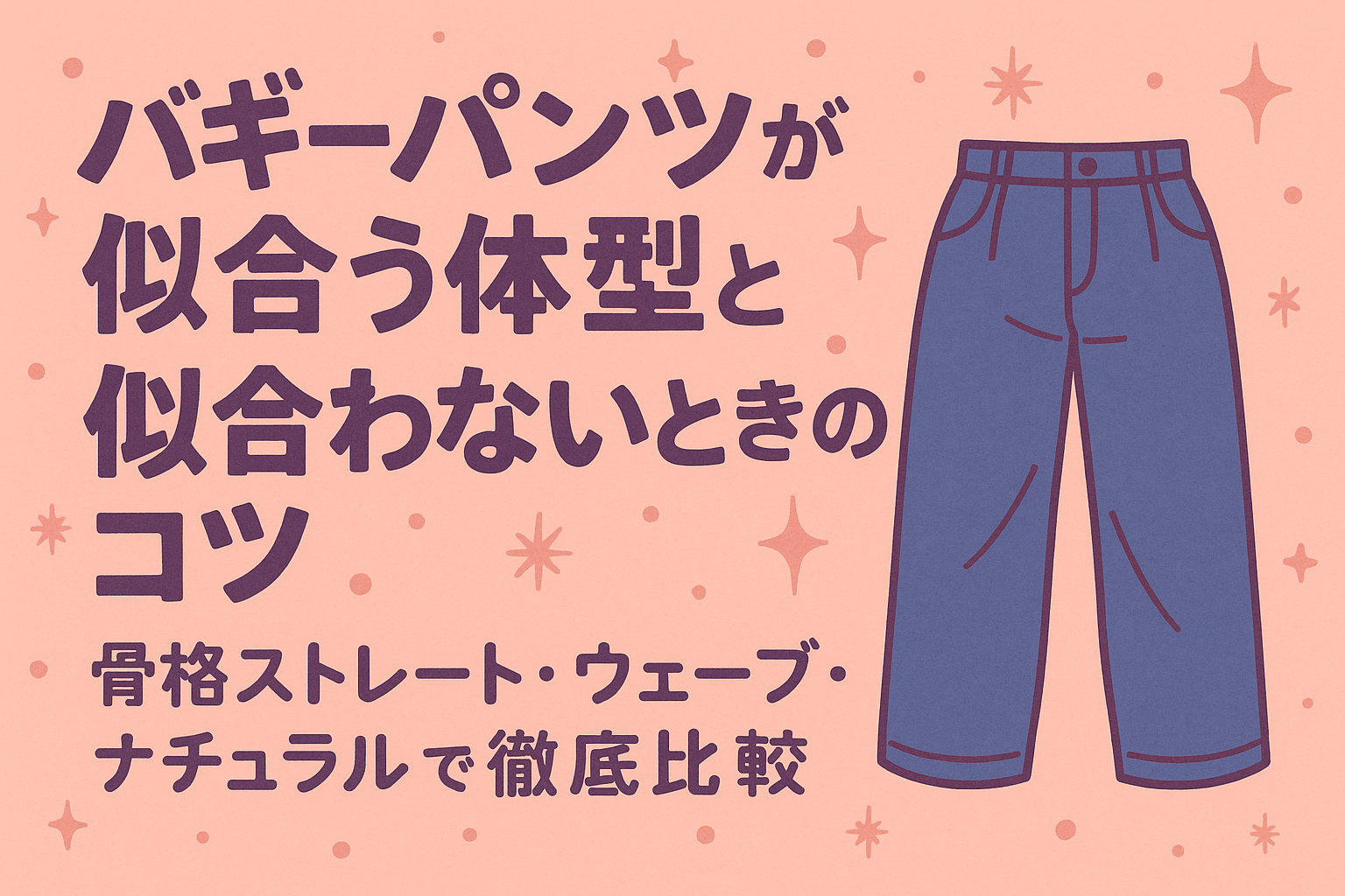 「バギーパンツをはくと太って見える気がする」「骨格診断ではあまり得意じゃないと言われたけど、それでもはきたい」――そんな人に向けたガイドです。結論から言うと、バギーパンツは“体型そのもの”よりも「バランスの取り方」と「素材・丈・ウエスト位置...