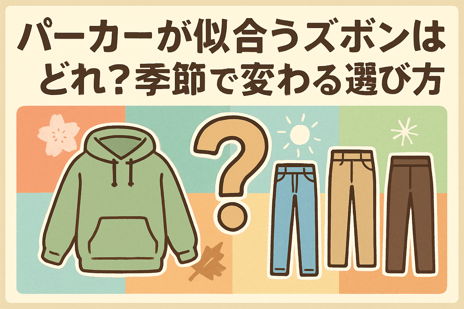 「パーカーが似合うズボン」を、春・夏・秋・冬の季節に合わせてやさしく整理しました。答えの軸はシンプルです。